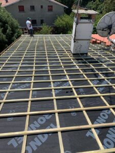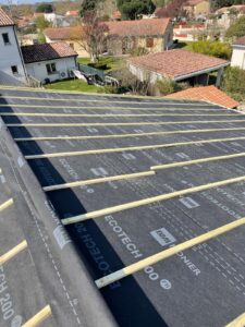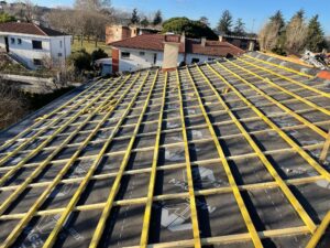 Nous retirons l’ancienne couverture, vérifions et renforçons la charpente si nécessaire, posons un écran sous-toiture pour assurer une parfaite étanchéité, améliorons l’isolation si besoin, puis installons la nouvelle couverture avec des finitions soignées (faîtage, rives, solins et zinguerie) afin de garantir une toiture solide, durable et parfaitement protégée contre les intempéries.