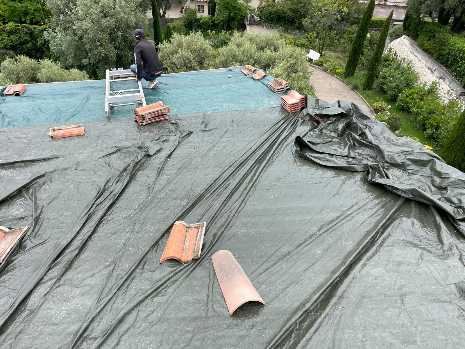 En cas de fuite ou de dégâts après une tempête, nous réalisons un bâchage rapide de votre toiture afin de protéger votre habitation contre les infiltrations d’eau. Nos couvreurs installent une bâche de protection solide et parfaitement fixée pour sécuriser la zone endommagée en attendant la réparation définitive. Cette intervention permet de limiter les dégâts et de préserver la structure de votre toiture.